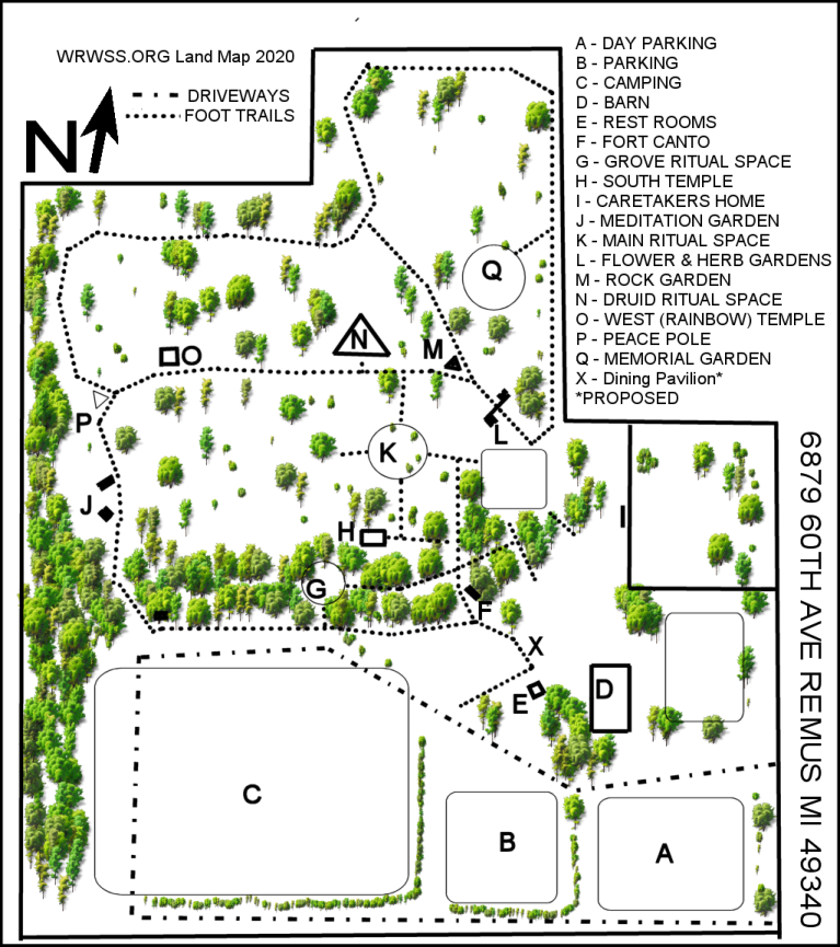 The other part of the property is covered with high grasses, trees, gardens, ritual spaces and trails. The trails themselves total over ¼ mile in length and give our visitors the opportunity to reconnect with nature. Ritual spaces and gardens have been set aside to help accommodate the needs of our visitors.